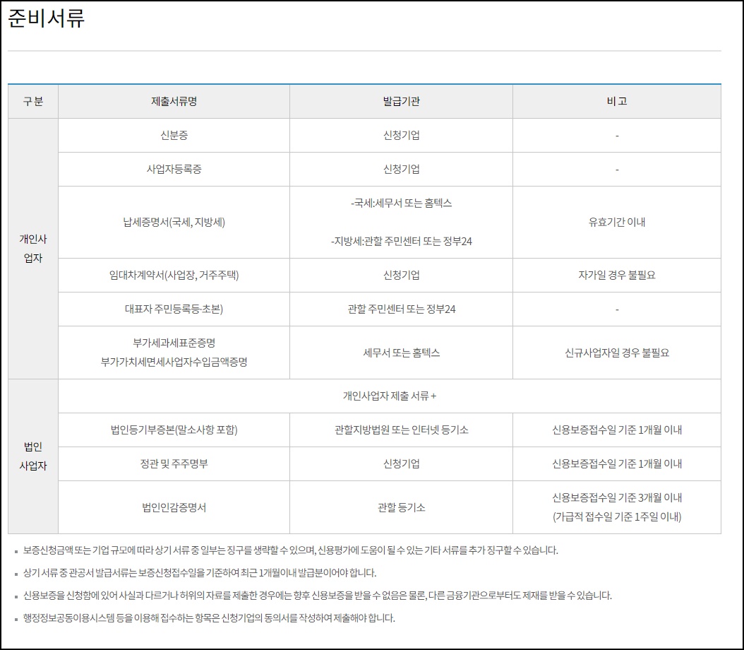 광주 소상공인 특례보증 준비서류